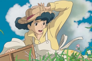 吹过山丘上一个正在画画的女孩